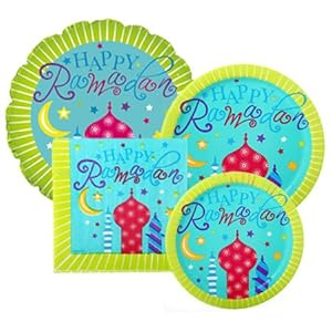 - Happy Ramadan Collection Party Pack. Each party pack contains 4 items: paper dinner plates, salad plates, napkins and foil balloons. All quality made in the U.S.A. and printed on recycled tissue paper with environmentally safe water based inks.