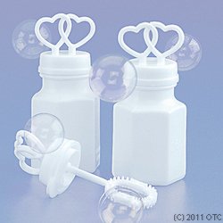 Intertwined hearts create a wonderful touch for any wedding. Each bottle holds approximately 0.6 ounces of bubble solution and its own wand. Box of 24 bubble favors. Decorate with different colored favor ribbon or tie-ons. Also great inside an organza bag. Bubbles are non-toxic and will not stain fabric. Manufacturer BackOrder until: 4/20/2006 Brand : Fashioncraft-Excello, Inc. Related Bridal People categories: Wedding Favors & Decorations: Wedding Bubble Favors Wedding Themes: Valentine's Day Wedding Theme